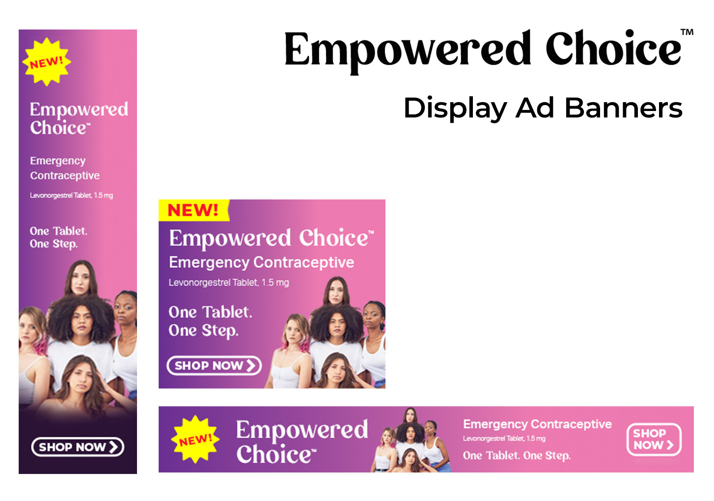 This is a smorgasbord of various marketing materials I created for Empowered Choice™. In addition to creating the box artwork and the POP display artwork, I also created floor clings, window clings, social media posts, sell sheets and web banners to promote the product.