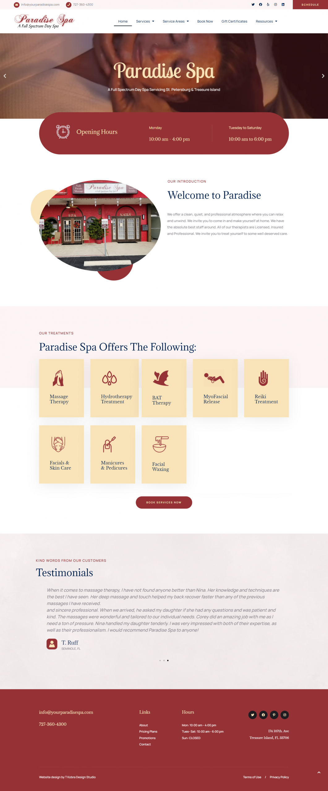 Paradise Spa is located in St. Petersburg, FL. I have been working with the owner to revitalize the business’s web presence. Originally being hired to just do SEO work, I proposed the idea of creating a whole new website for them. This is a sample of the progress we’ve made so far in creating his new website.